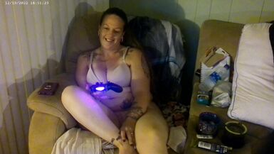 BUSTY LONG HAIR GAMER GIRL IN BRA AND PANTIES PLAYING SMOKING CIGARETTES
