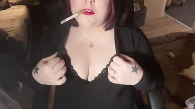 BRITISH TART TINA SNUA TUGS ON HER PERKY NIPPLES & CHAIN SMOKES 2 CIGARETTES - BIG TITS BBW SATISFIES YR SMOKING FETISH