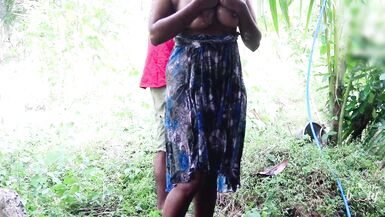 A BIG BOOTY STEPMOM BATHES NAKED OUTSIDE WHILE CHEATING WITH THEIR SECRETARIES ON STRANGERS
