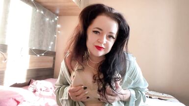 HOT MISTRESS LARA TOUCHES HER BIG NATURAL TITS IN THE MORNING