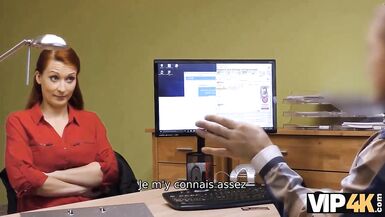 VIP4K. REDHEAD WITH BIG TITS IS RAMMED BY THE LENDER