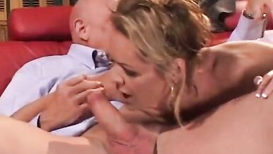 BLOND COUGAR GIVES HEAD JOB AND TAKES CUM ON HER FEET AFTER FUCKING DICK