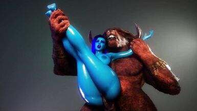 MONSTER HUGE COCK OF THIS MINOTAUR PERFECTLY STRETCHES THE PUSSY OF THIS BLUE SKINNED BABE