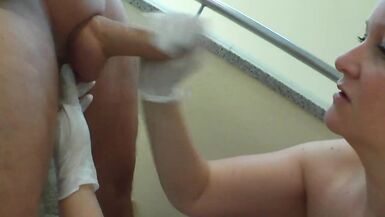 MILF MAID GIVES HANDJOB IN RUBBER GLOVES AND TAKE HIS CUM