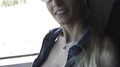 COCKSUCKING BLONDE TAKES ON A STUD'S COCK IN A CAR