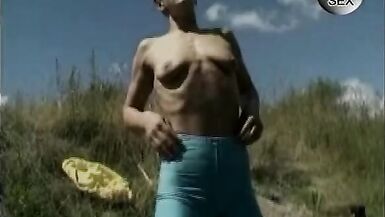 . German Retro, casting, outdoor, at the lake, red-hairy Milf, hanging tits, hairy cunt, shave cunt, large pussy lips, fucking with dildo, Rubbing cock with pussy, handjob, cum on tits