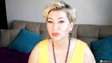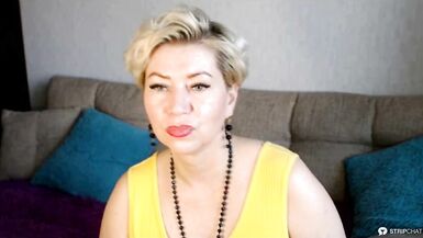 SEXY MATURE LADY AIMEEPARADISE IN A YELLOW DRESS SPREADS HER BUTTOCKS & FUCKS HERSELF WITH A DILDO!