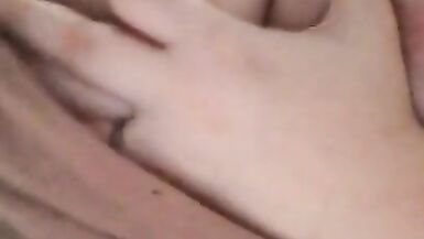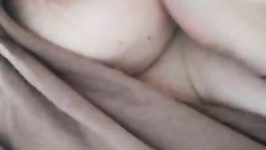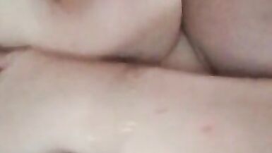 A horny wife is bouncing her ass over my dick. It had to end cum on big tits.