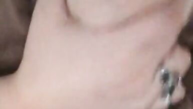 Pierced nipple bouncing big natural boobs cum on tits
