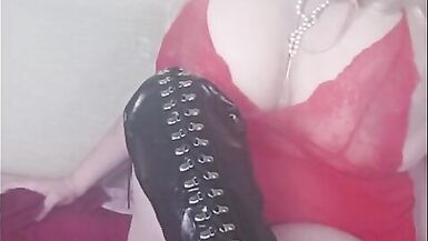 PLAYING AROUND IN RED AND BLACK BOOTS