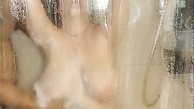 Horny Mommy takes a Dildo in Shower to Wash & Play